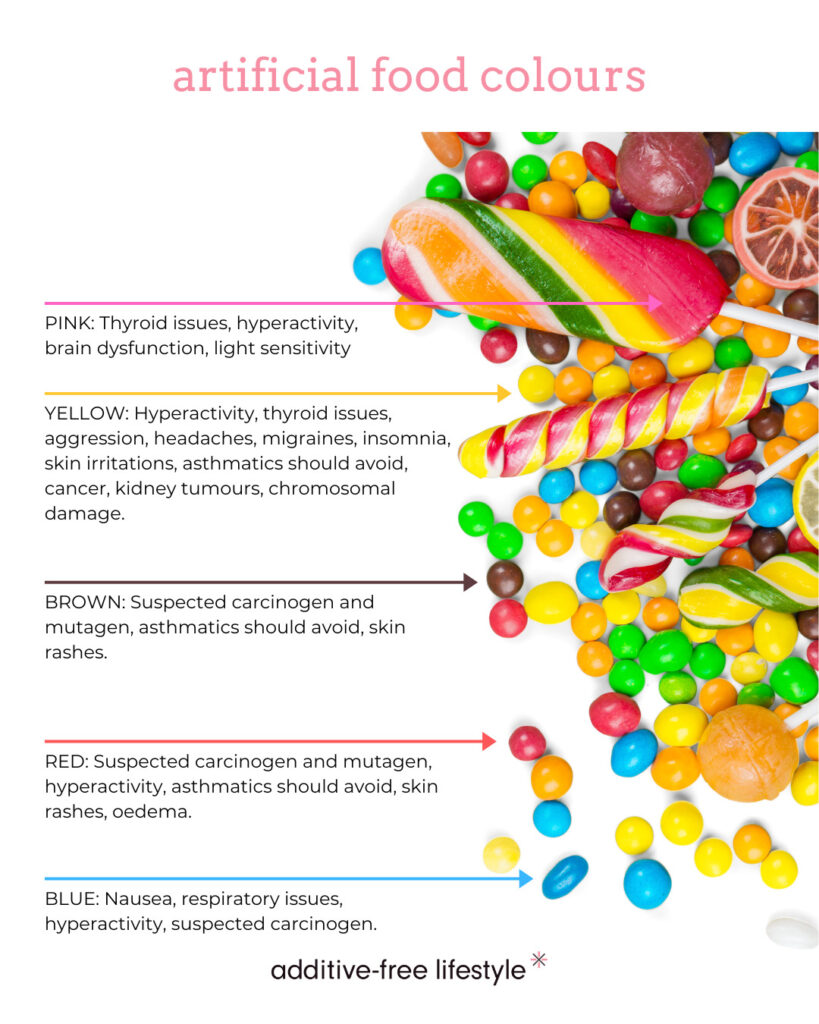 Itβs even listed on the Food Standards Australia and New Zealand website that children with βfood intolerancesβ can have a reaction to food colours which may include rashes, irritable bowel symptoms, headaches, and behavioural changes.